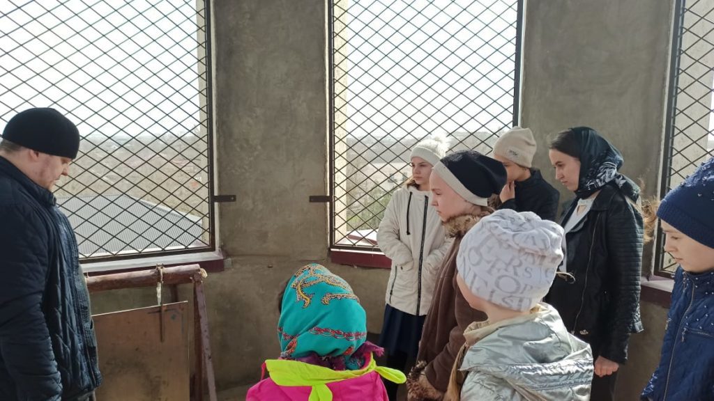 Священнослужитель рассказал ребятам о храме, его устройстве и находящихся в нем святынях. Также отец Павел поднялся с ребятами на колокольню и предоставил им возможность позвонить в колокола.