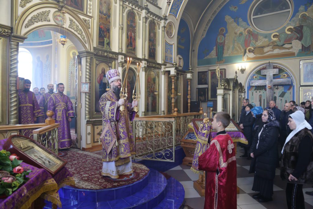 Накануне вечером владыка Варлаам возглавил всенощное бдение с чином выноса Честного и Животворящего Креста Господня.