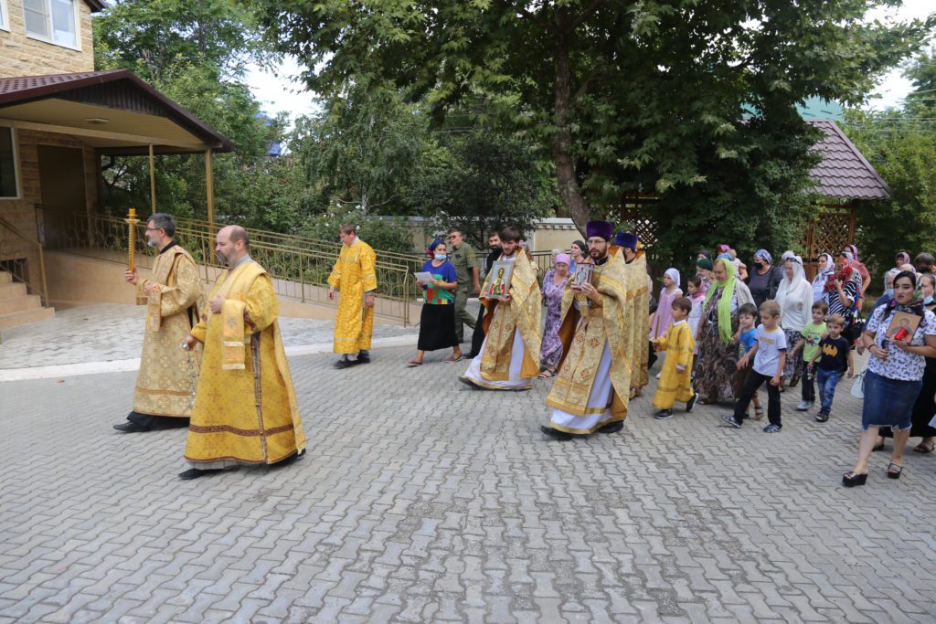 По заамвонной молитве состоялся крестный ход вокруг храма, после чего было совершено славление, вознесена молитва к небесному покровителю Махачкалы – святому благоверному великому князю Александру Невскому и провозглашены уставные многолетия.