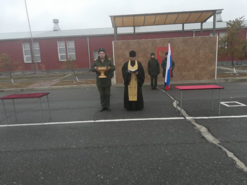 15 ноября 2020 года по благословению архиепископа Махачкалинского и Грозненского Варлаама штатный клирик Ново-Синайского мужского монастыря г. Сунжа (Республика Ингушетия) иерей Андрей Миссюра посетил войсковую часть в станице Троицкая РИ, где принял участие в торжественной церемонии принятия присяги молодым пополнением части.