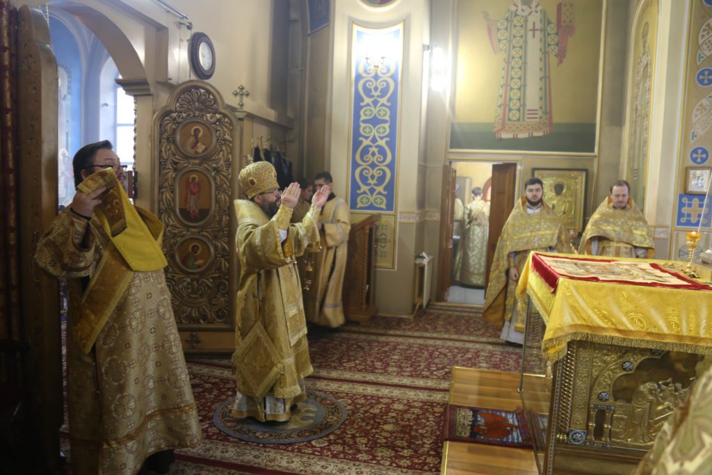 По заамвонной молитве было совершено славление, вознесена молитва святителю Николаю Чудотворцу и пропето величание.