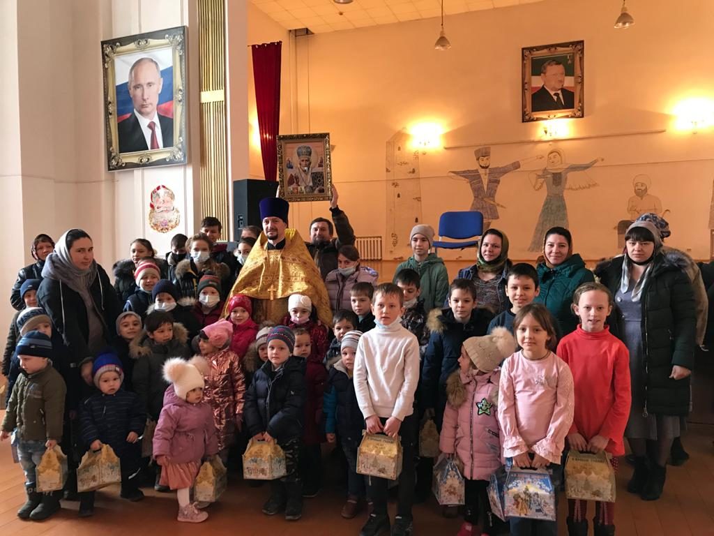По окончании богослужений священнослужитель зачитал прихожанам и военнослужащим Рождественские послания Святейшего Патриарха Московского и всея Руси Кирилла и архиепископа Махачкалинского и Грозненского Варлаама, после чего поздравил собравшихся с наступающим Рождеством Христовым и преподнес детям сладкие подарки.