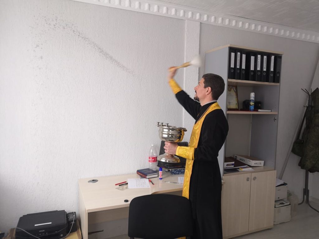 Руководитель отдела по взаимодействию с вооруженными силами совершил чин освящения штаба батальона материально-технического обеспечения в Ханкале