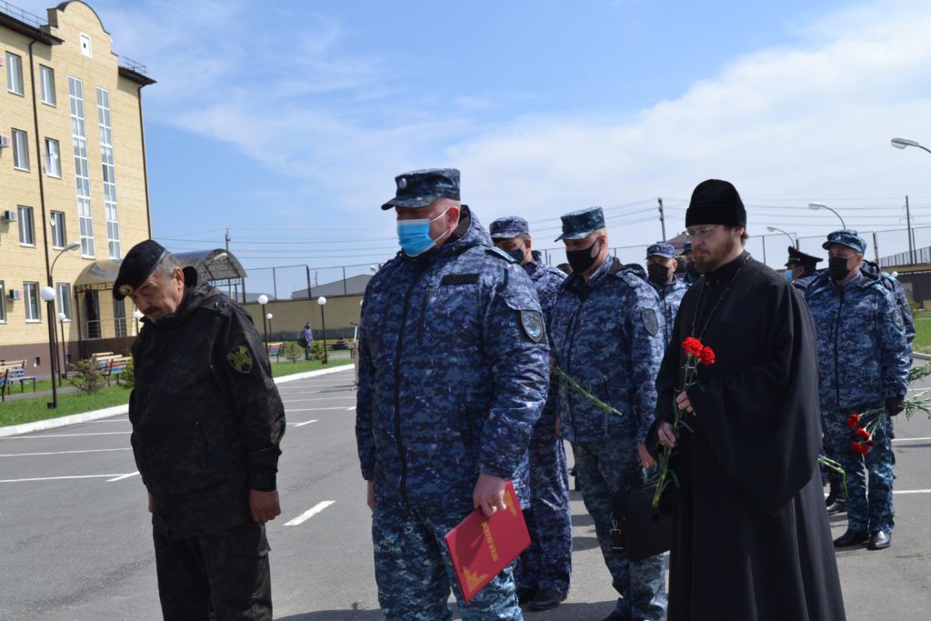 В торжественном собрании приняли участие заместитель начальника ГУ МВД России по СКФО – руководитель ВОГОиП МВД России генерал-майор полиции Николай Федорук, руководство и личный состав отряда, а также штатный клирик Ново-Синайского мужского монастыря в г. Сунжа РИ иерей Андрей Миссюра.