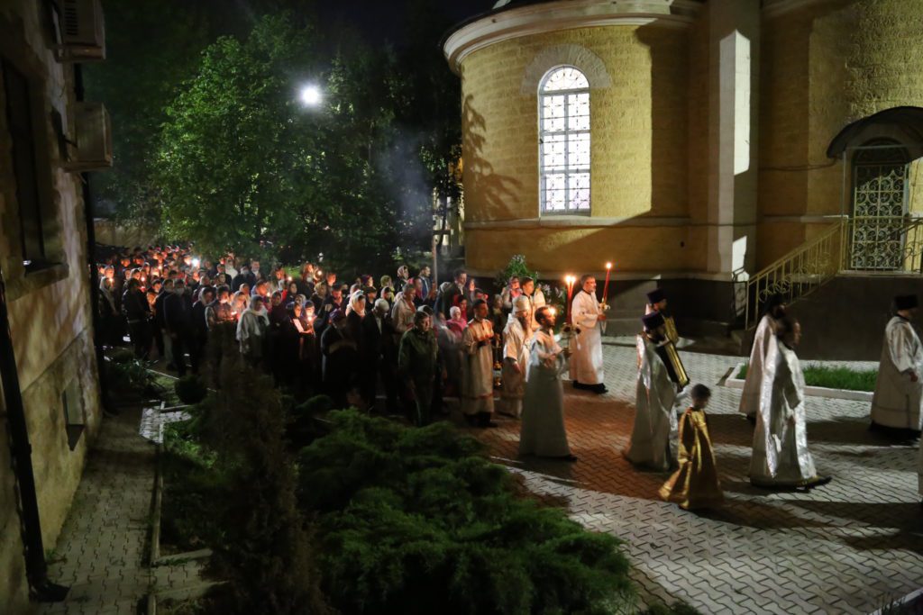 В полночь при пении стихиры «Воскресение Твое, Христе Спасе…» состоялся крестный ход вокруг собора.