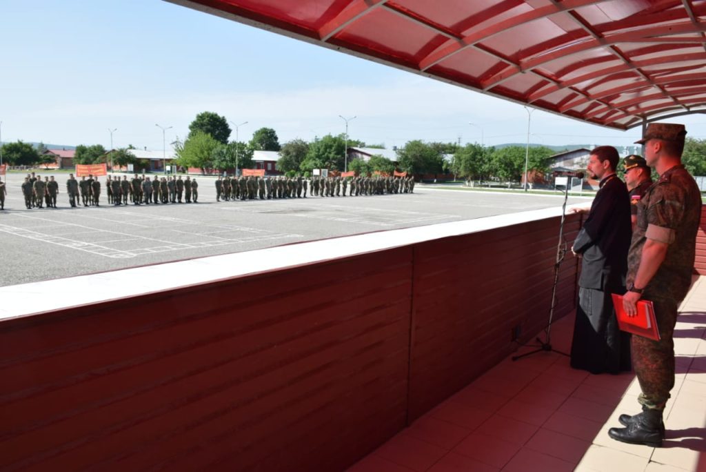 Священнослужитель принял участие в торжественном митинге, посвящённом началу летнего периода обучения в Вооруженных Силах РФ, в ходе которого обратился с напутственным словом к военнослужащим.