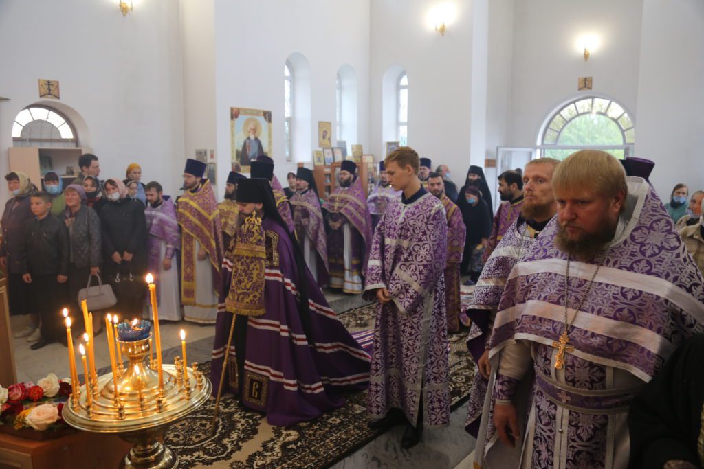 После чтения Евангелия владыка Варлаам обратился к духовенству и мирянам с архипастырским словом и поздравил собравшихся с престольным праздником Воздвижения Честного и Животворящего Креста Господня.