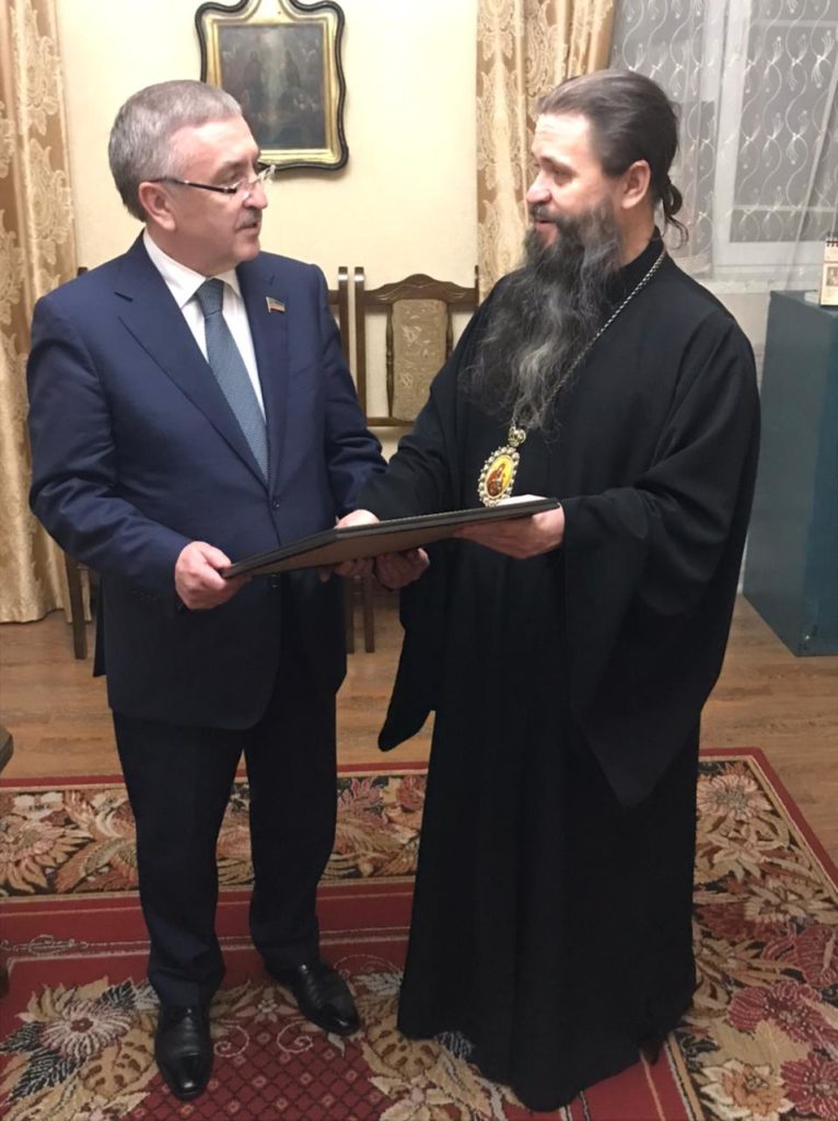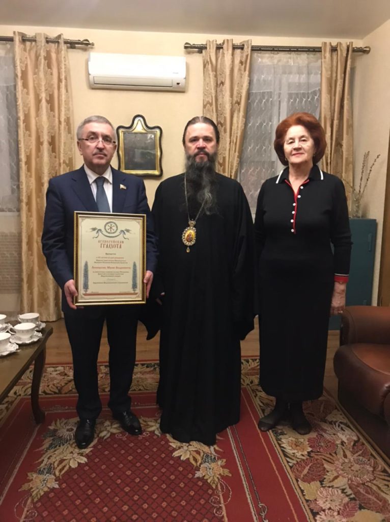 Владыка поздравил вице-спикера парламента с 60-летием со дня рождения и вручил архиерейскую грамоту «за многолетнее служение на благо Республики Дагестан и активное содействие Махачкалинской епархии».