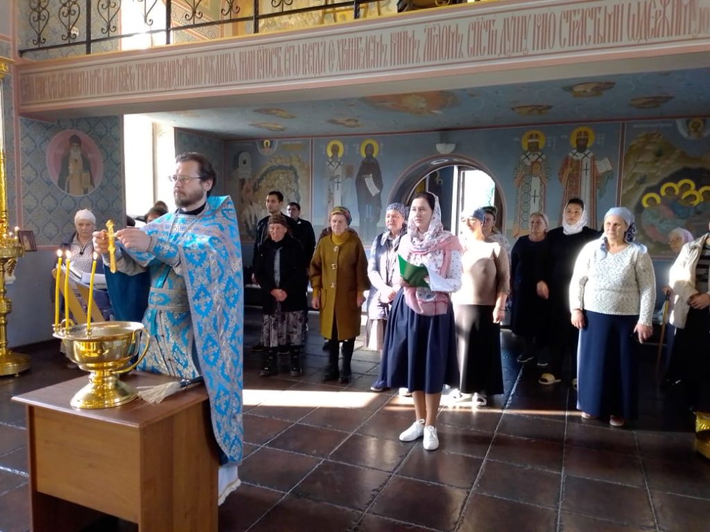 В завершении богослужения о. Андрей поздравил насельников обители и прихожан с престольным праздником и передал благословение от правящего архиерея священноархимандрита обители архиепископа Махачкалинского и Грозненского Варлаама.