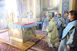 По заамвонной молитве было совершено славление, вознесена молитва ко Пресвятой Владычице нашей Богородице и Приснодеве Марии и пропето величание.