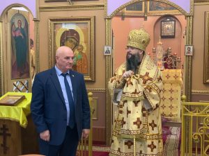 Затем архипастырь поблагодарил Александра Зимина за постоянное участие в богослужениях и всестороннюю поддержку, оказываемую епархии.