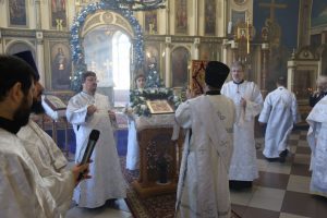 По окончании Литургии перед рождественской свечой, знаменующей Вифлеемскую звезду, были пропеты тропарь и кондак праздника Рождества Христова.