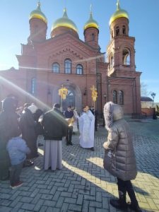 По заамвонной молитве был совершен крестный ход вокруг храма.