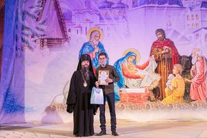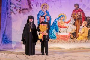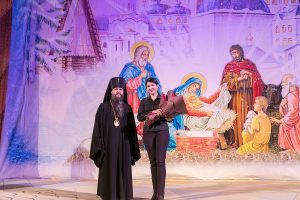 За неоценимый вклад в сохранение лучших традиций национальной культуры и многолетнее содействие Махачкалинской епархии архиерейская грамота была вручена народному артисту Республики Дагестан Алексею Тимохину.