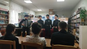 Для собравшихся прозвучали казачьи песни в исполнении мужской вокальной группы Государственного кизлярского терского ансамбля казачьей песни.