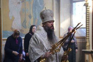 По сугубой ектении архиепископ Варлаам прочитал молитву о восстановлении мира, возносимую во всех храмах Русской Православной Церкви по благословению Святейшего Патриарха Московского и всея Руси Кирилла.