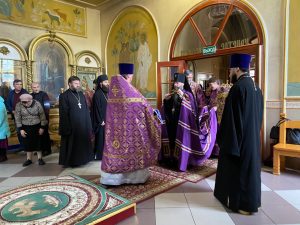 По сугубой ектении архиепископ Варлаам прочитал молитву о восстановлении мира, возносимую во всех храмах Русской Православной Церкви по благословению Святейшего Патриарха Московского и всея Руси Кирилла.