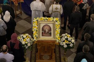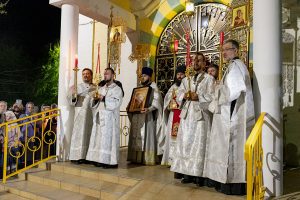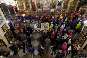 По сугубой ектении архиепископ Варлаам прочитал молитву о восстановлении мира, возносимую во всех храмах Русской Православной Церкви по благословению Святейшего Патриарха Московского и всея Руси Кирилла.