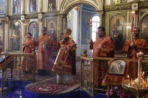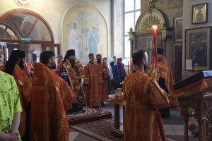 За Литургией Его Высокопреосвященству сослужили клирики Свято-Успенского собора.
