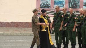 6 июля 2022 года по благословению архиепископа Махачкалинского и Грозненского Варлаама штатный клирик Ново-Синайского мужского монастыря г. Сунжа (Республика Ингушетия) иерей Андрей Миссюра посетил войсковую часть в станице Троицкая РИ, где принял участие в торжественной церемонии принятия присяги молодым пополнением части.