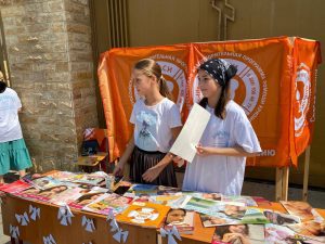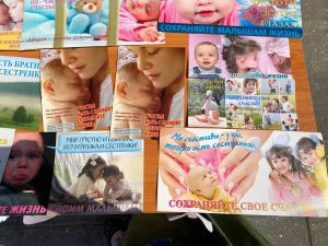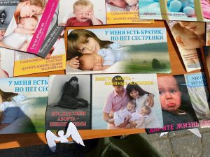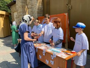 Перед храмом ребята приходской воскресной школы «Преображение» выставили детскую обувь, как символ погибших от абортов детей, раздавали брошюры прохожим и прихожанам храма.