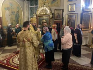 Накануне вечером епархиальный архиерей возглавил в кафедральном соборе всенощное бдение.