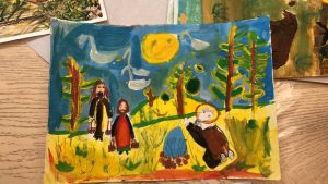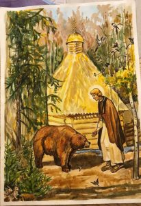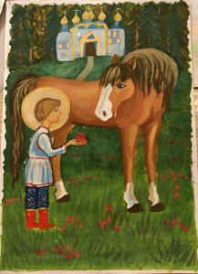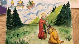 3-е место – Дегтярева Пелагея (8 лет), «Сергий Радонежский несет дрова», г. Каспийск.