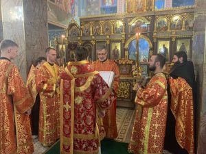 За Божественной литургией Его Высокопреосвященству сослужил секретарь епархии, благочинный Махачкалинского церковного округа иеромонах Силуан (Исаев-Баидаури), благочинный Грозненского церковного округа иеромонах Амвросий (Марченко), клирики Грозненского благочиния и Свято-Успенского собора г. Махачкалы.