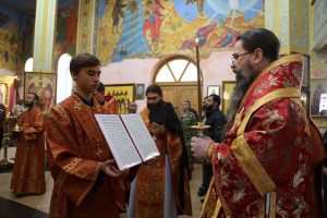 По сугубой ектении архиепископ Варлаам прочитал молитву о восстановлении мира, возносимую во всех храмах Русской Православной Церкви по благословению Святейшего Патриарха Московского и всея Руси Кирилла.