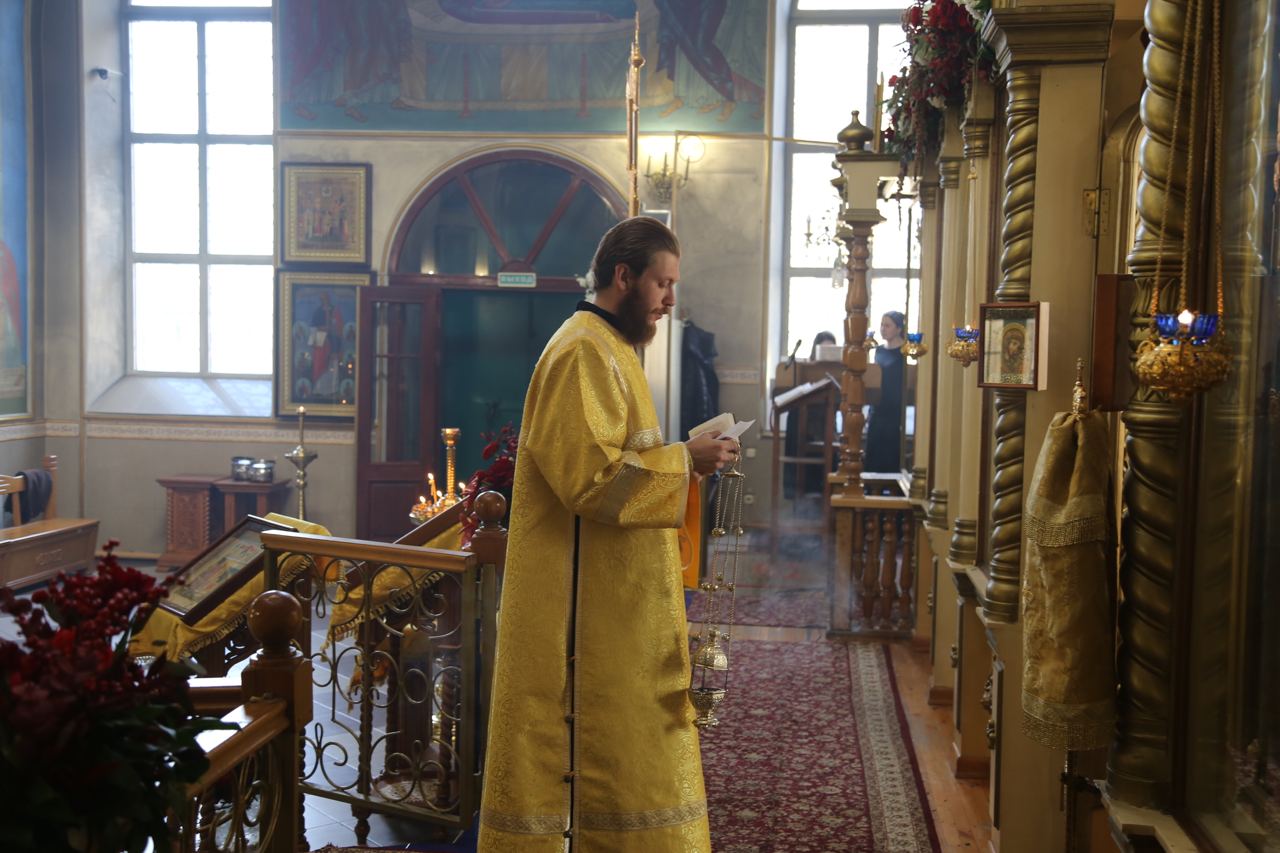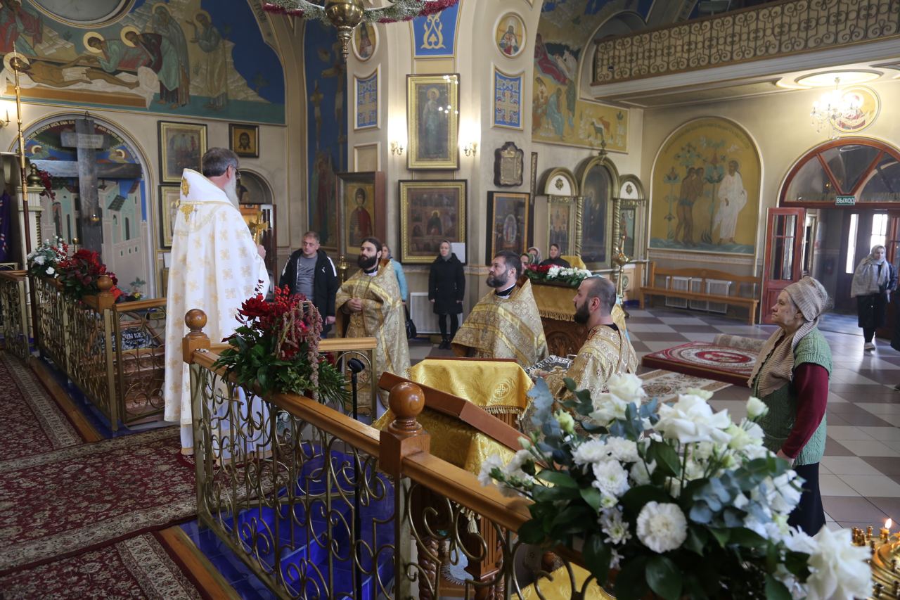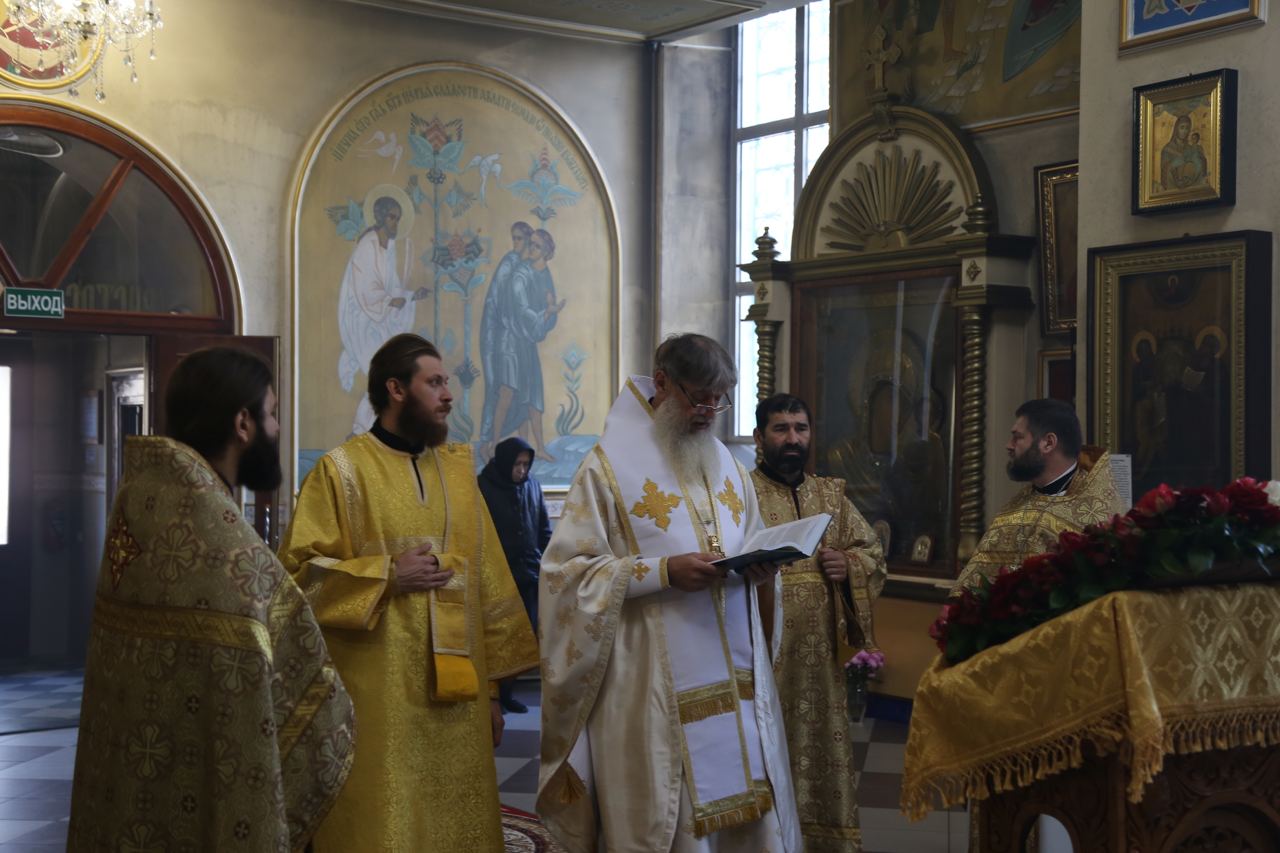 Преосвященнейшему владыке за богослужением сослужили секретарь Махачкалинской епархии иеромонах Силуан (Исаев-Баидаури) и клирик храма иерей Владимир Фильчаков.