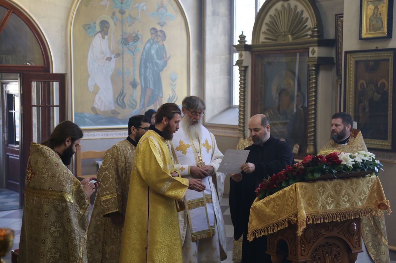 По окончании богослужения архипастырь и сослужившее ему духовенство совершили славление святой великомученице Екатерине.