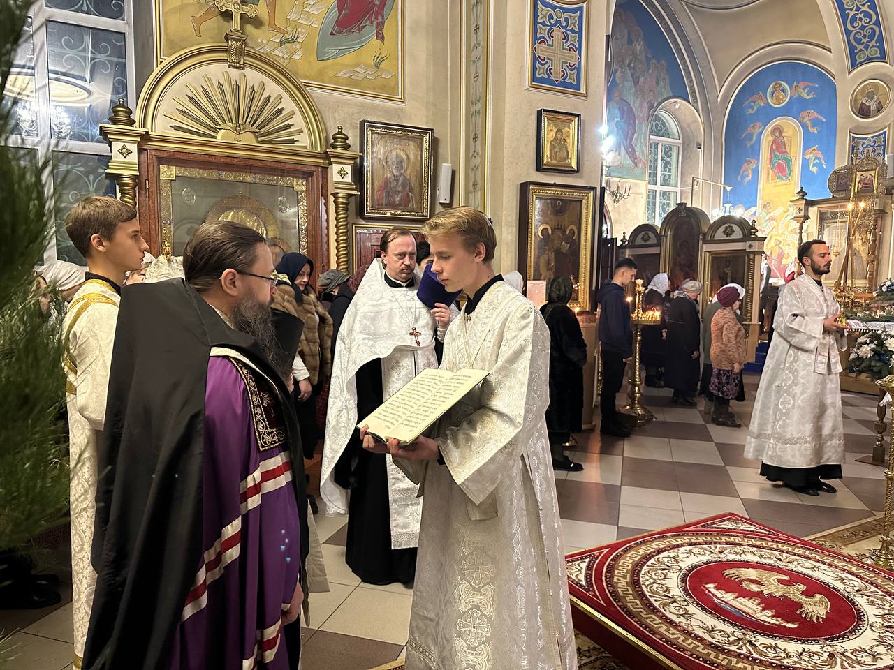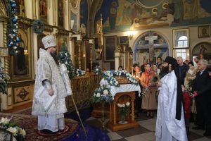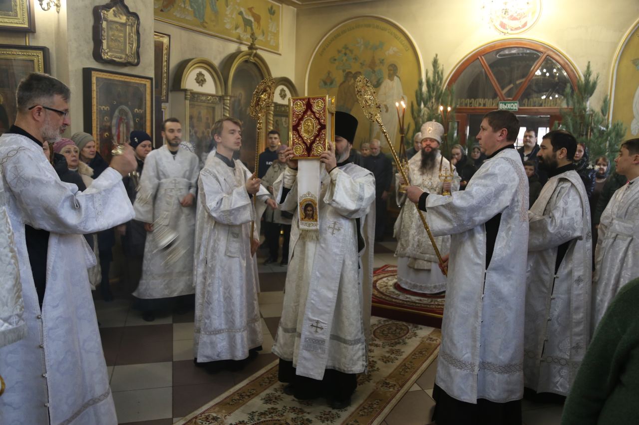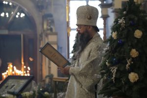 По прочтении Евангелия владыка Варлаам огласил Рождественское послание Святейшего Патриарха Московского и всея Руси Кирилла архипастырям, пастырям, монашествующим и всем верным чадам Русской Православной Церкви.