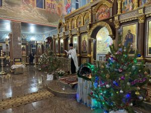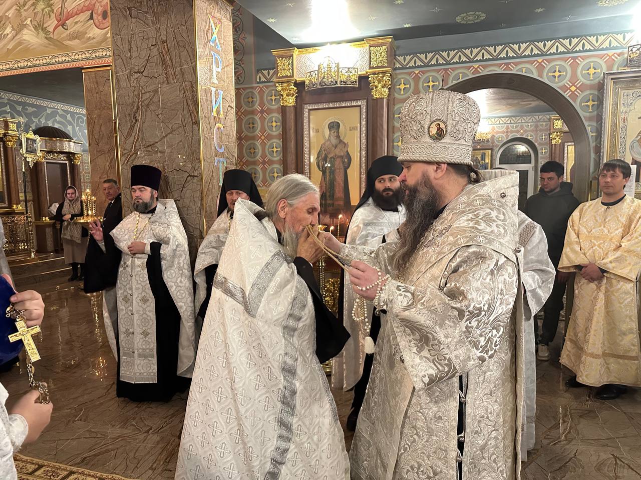 Накануне вечером архиерей совершил всенощное бдение в Свято-Георгиевском соборе г. Кизляра (Республика Дагестан).