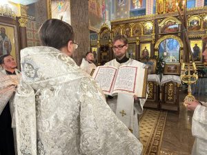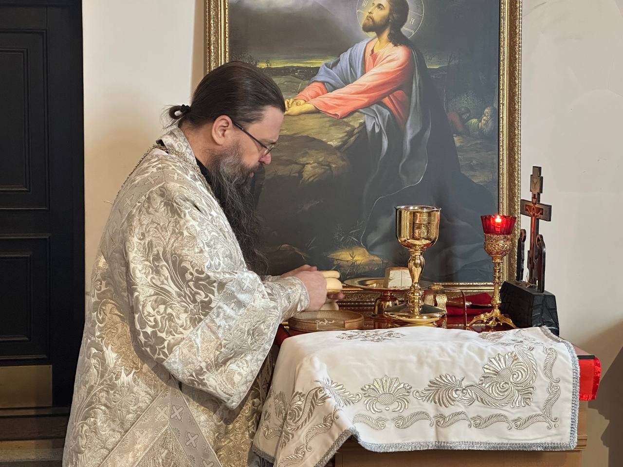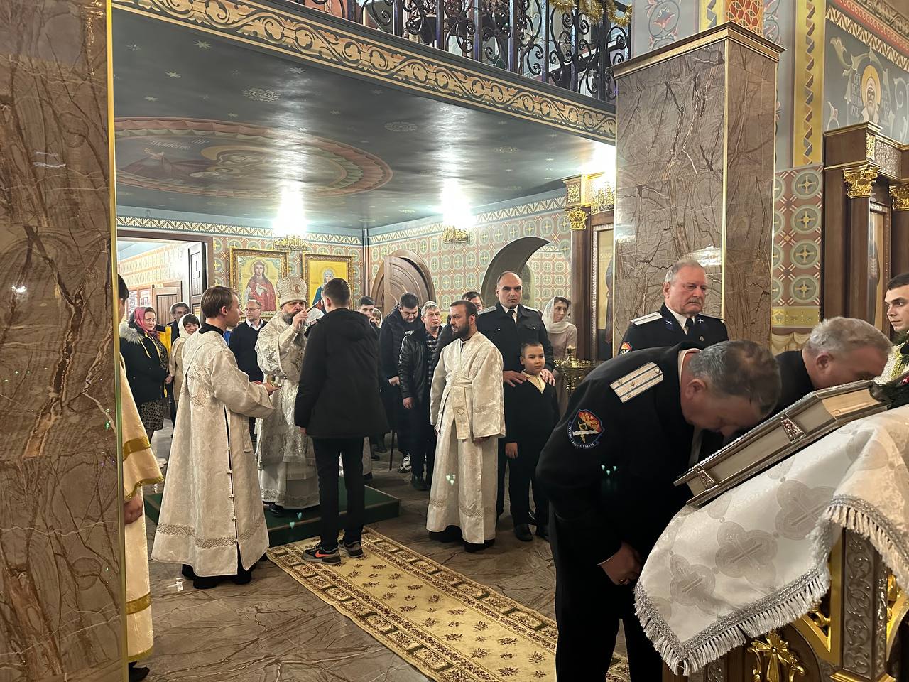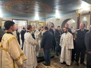По сугубой ектении архиепископ Варлаам прочитал молитву о восстановлении мира, возносимую во всех храмах Русской Православной Церкви по благословению Святейшего Патриарха Московского и всея Руси Кирилла.