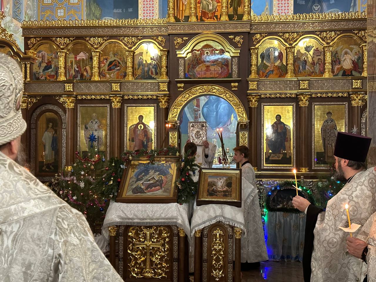В Неделю 30-ю по Пятидесятнице архиепископ Варлаам совершил Литургию в храме Рождества Христова в станице Наурской
