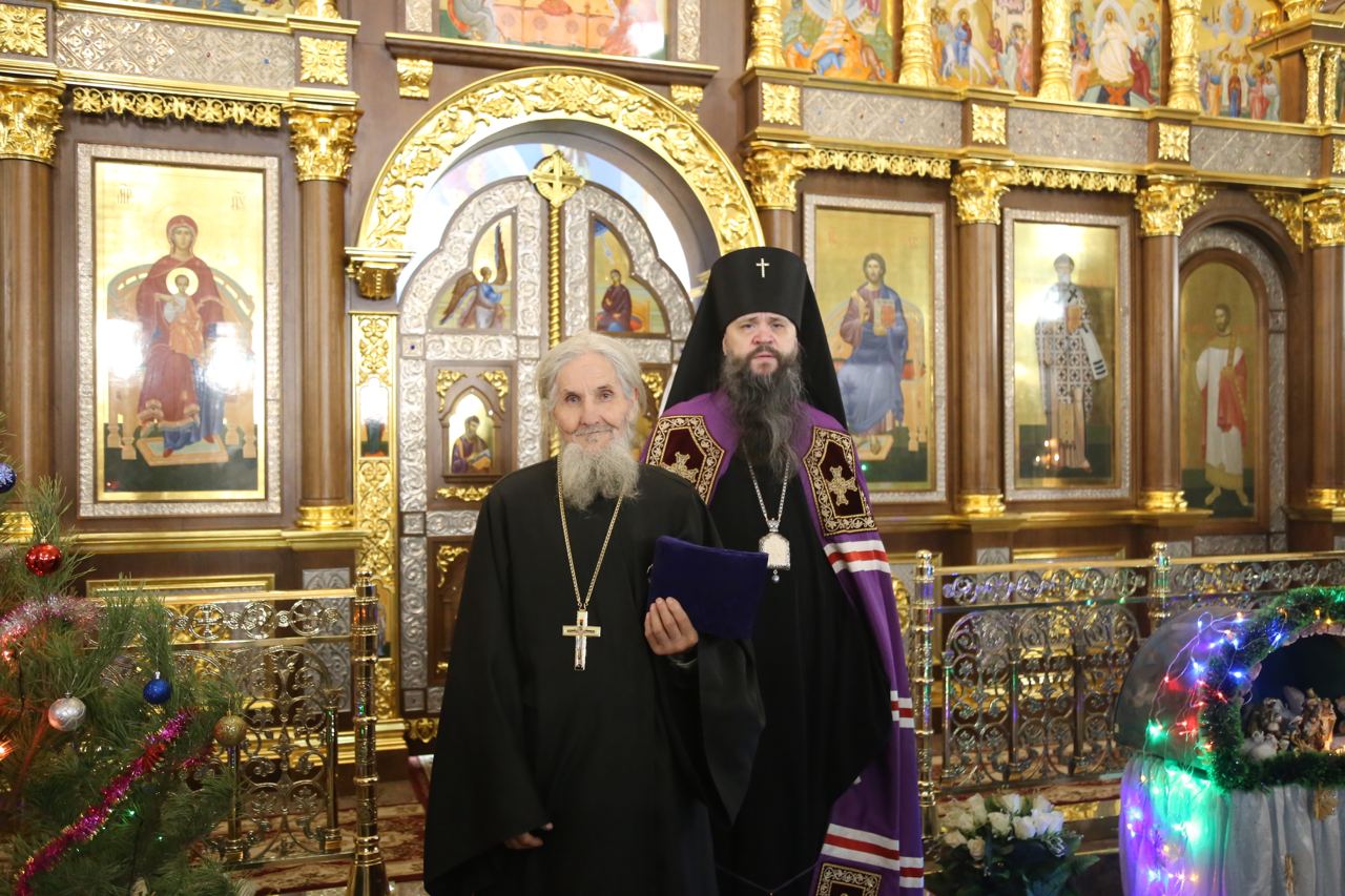 Перед полиелеем архиепископ Варлаам вручил священнослужителям Кизлярского благочиния юбилейные кресты и памятные знаки «10 лет Махачкалинской епархии», также по окончании всенощного бдения памятные знаки были вручены и прихожанам Свято-Георгиевского собора г. Кизляра.
