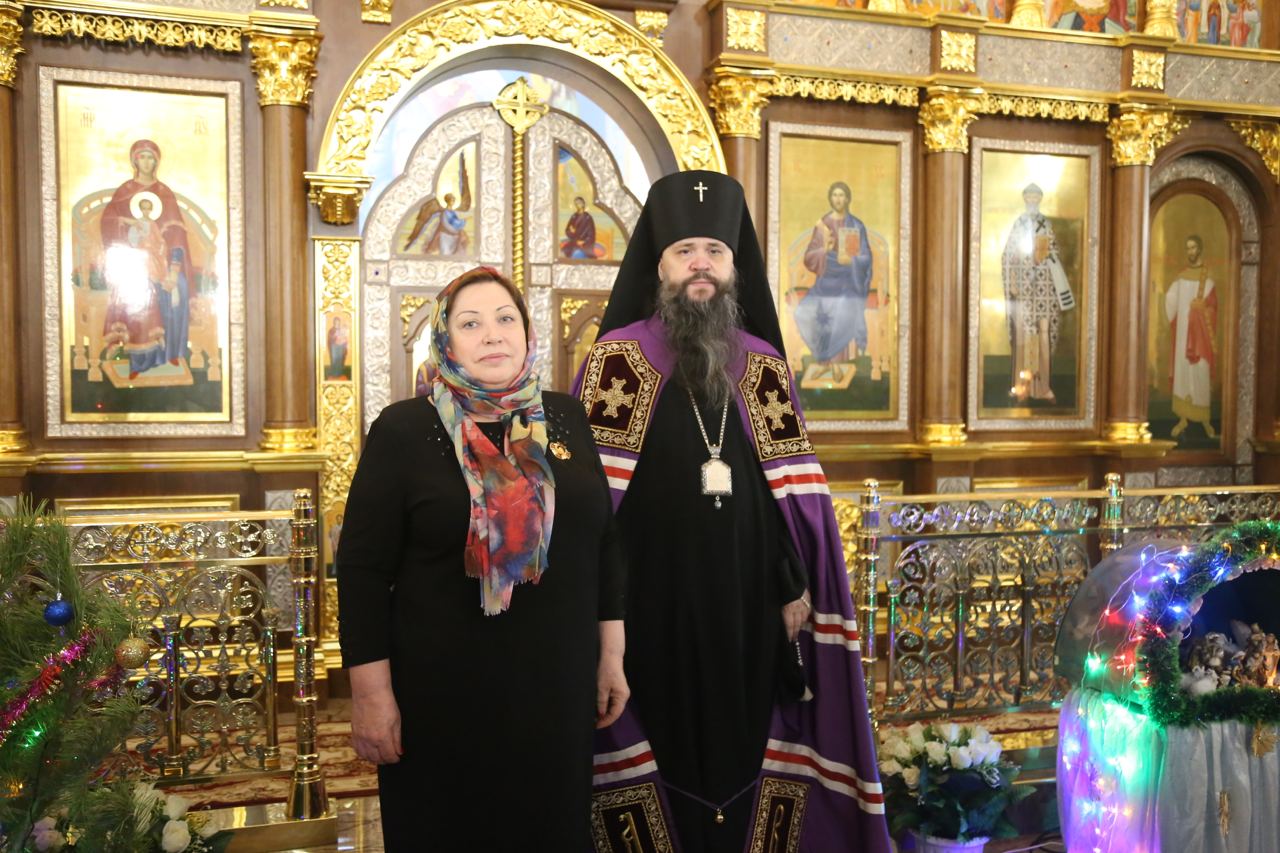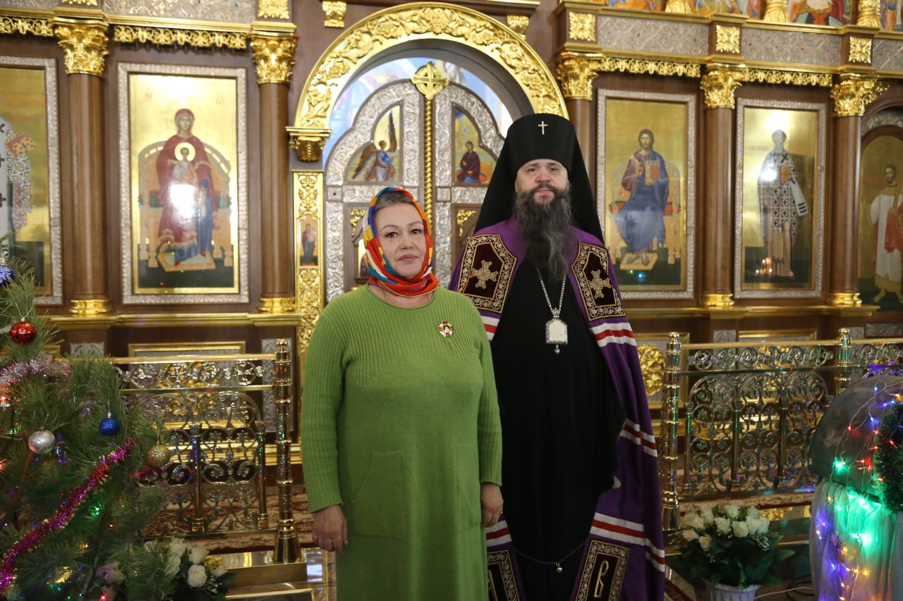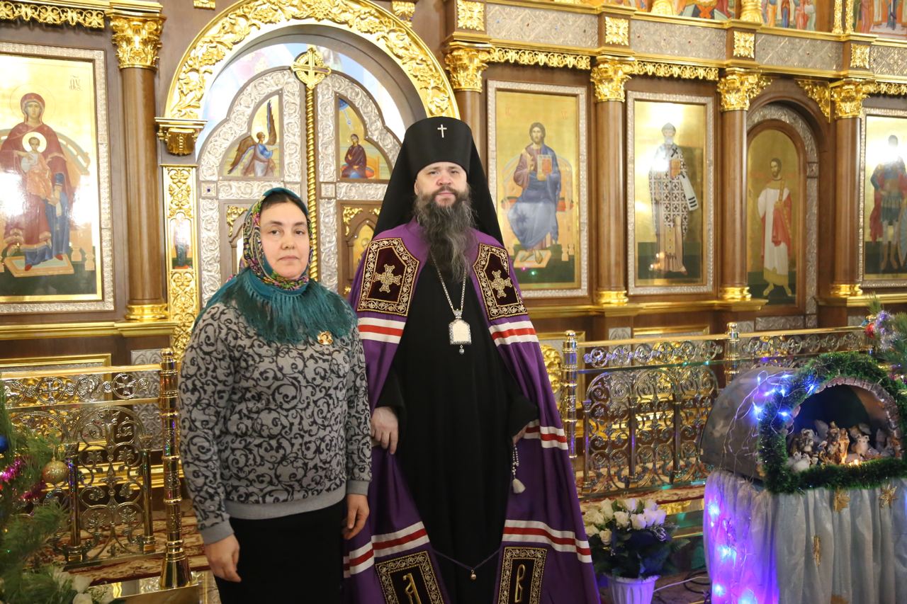 Архиепископ Варлаам вручил прихожанам храма Рождества Христова в станице Наурской памятные знаки «10 лет Махачкалинской епархии».