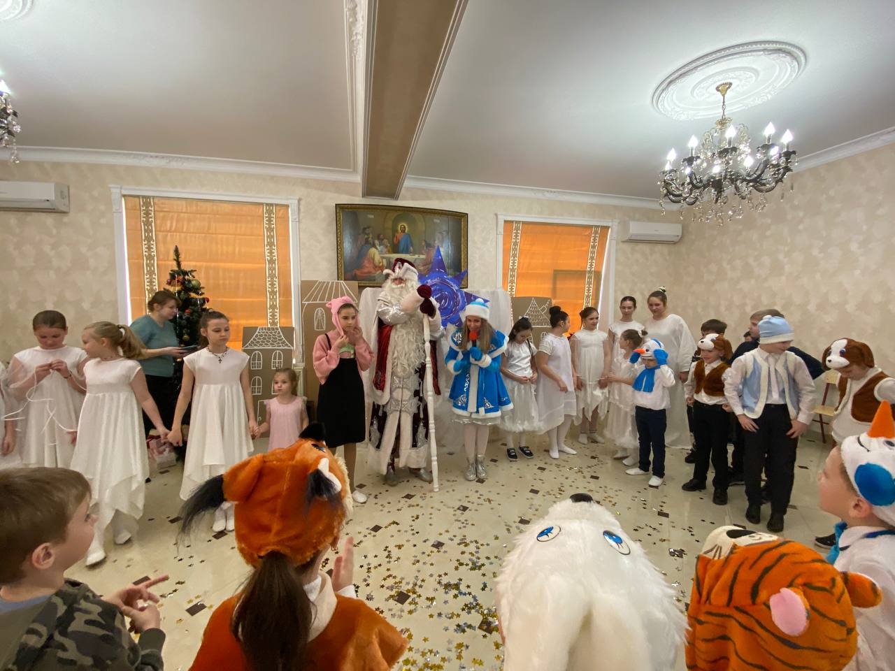 Воспитанники средней группы подготовили танцевальную композицию «Зимушка-зима» и инсценировку притчи об ангеле и ёлочке.