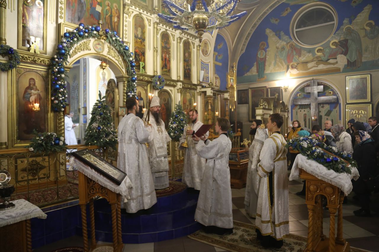 Его Высокопреосвященству сослужили клирики кафедрального храма.