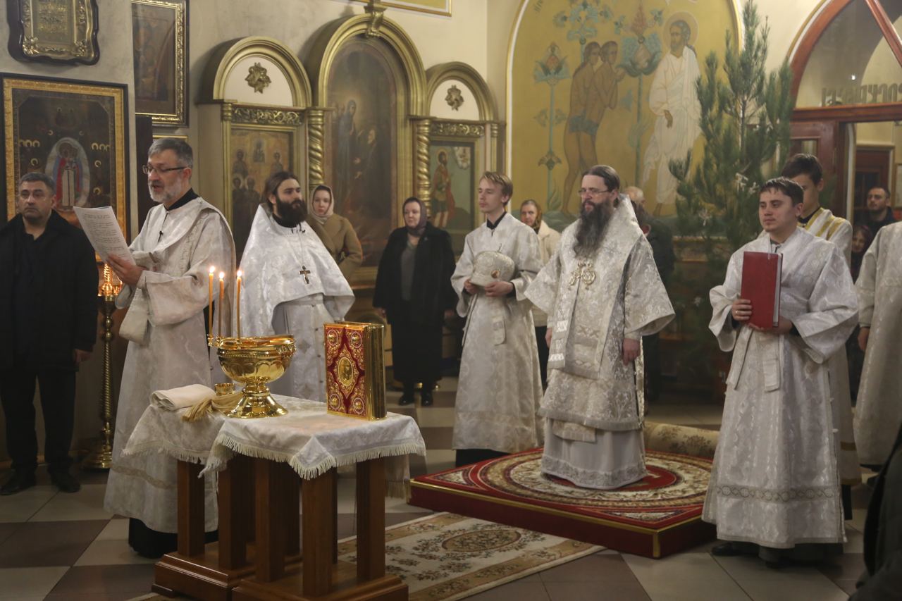 По заамвонной молитве в центре храма прозвучали тропарь и кондак праздника Богоявления.