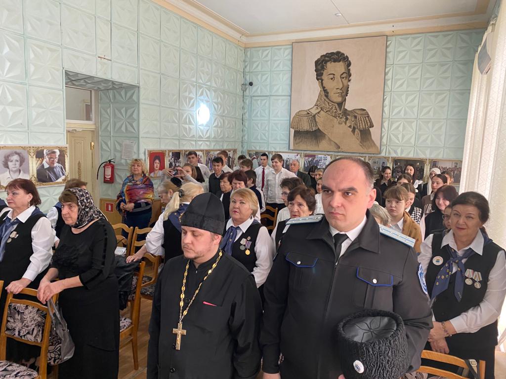 От представителей казачества выступил С.Ф. Свиридович, начальник отдела по делам гражданской обороны и чрезвычайных ситуаций Администрации Кизлярского района. Степан Федорович поблагодарил Благочинного отца Павла и также сотрудников музея за хорошо подготовленное и полезное мероприятие, обратился к молодёжи, чтобы черпала знания из книг и продолжала традиции прошлых поколений.