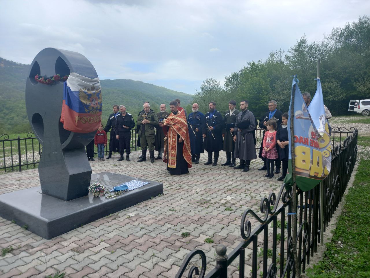На месте героического подвига 6-ой роты ВДВ, у памятного креста, была совершена заупокойная Панихида по погибшим воинам и пропеты старинные гимны и псалмы.
