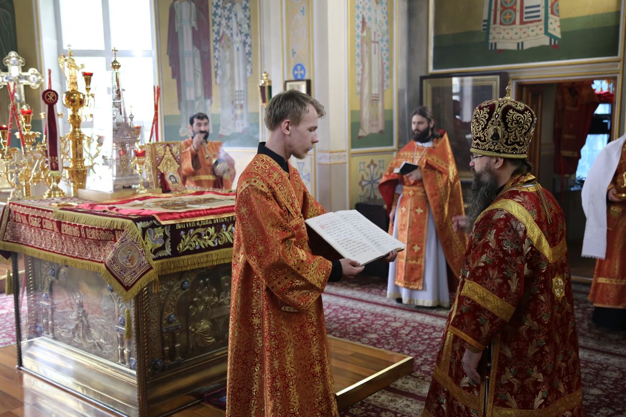 По сугубой ектении архиепископ Варлаам прочитал молитву о Святой Руси, возносимую во всех храмах Русской Православной Церкви по благословению Святейшего Патриарха Московского и всея Руси Кирилла.