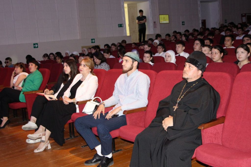 19 мая в доме традиционной культуры г.Кизляр прошло мероприятие организованное администрацией города, посвящённое профилактике борьбы с терроризмом и экстремизмом под названием «МОЯ РОДИНА РОССИЯ НЕТ ТЕРРОРИЗМУ». Концертный зал собрал более двухсот человек, в том числе учащихся школ, вузов и сузов города. По благословению архиепископа Махачкалинского и Грозненского Варлаама, участие в мероприятии принял благочинный Кизлярского церковного округа, настоятель собора вмч. Георгия победоносца г.Кизляр иерей Павел Каликин. Священнослужитель обратился к присутствующим с назидательным словом, о данной проблеме постигнувшей весь мир. Мероприятие продолжалось концертом в исполнении солистов дома культуры.