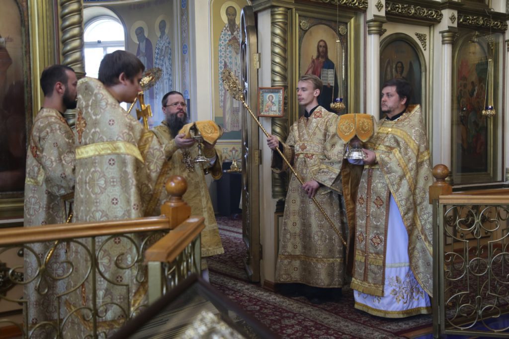 За Литургией Его Высокопреосвященству сослужили клирики Свято-Успенского собора.
