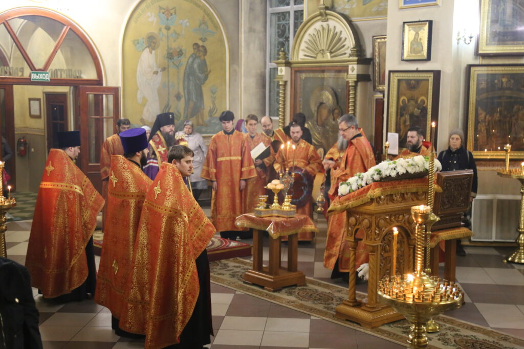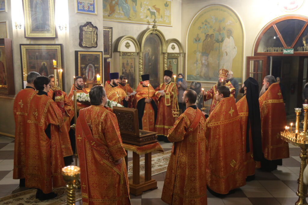 По сугубой ектении архиепископ Варлаам прочитал молитву о Святой Руси, возносимую во всех храмах Русской Православной Церкви по благословению Святейшего Патриарха Московского и всея Руси Кирилла.