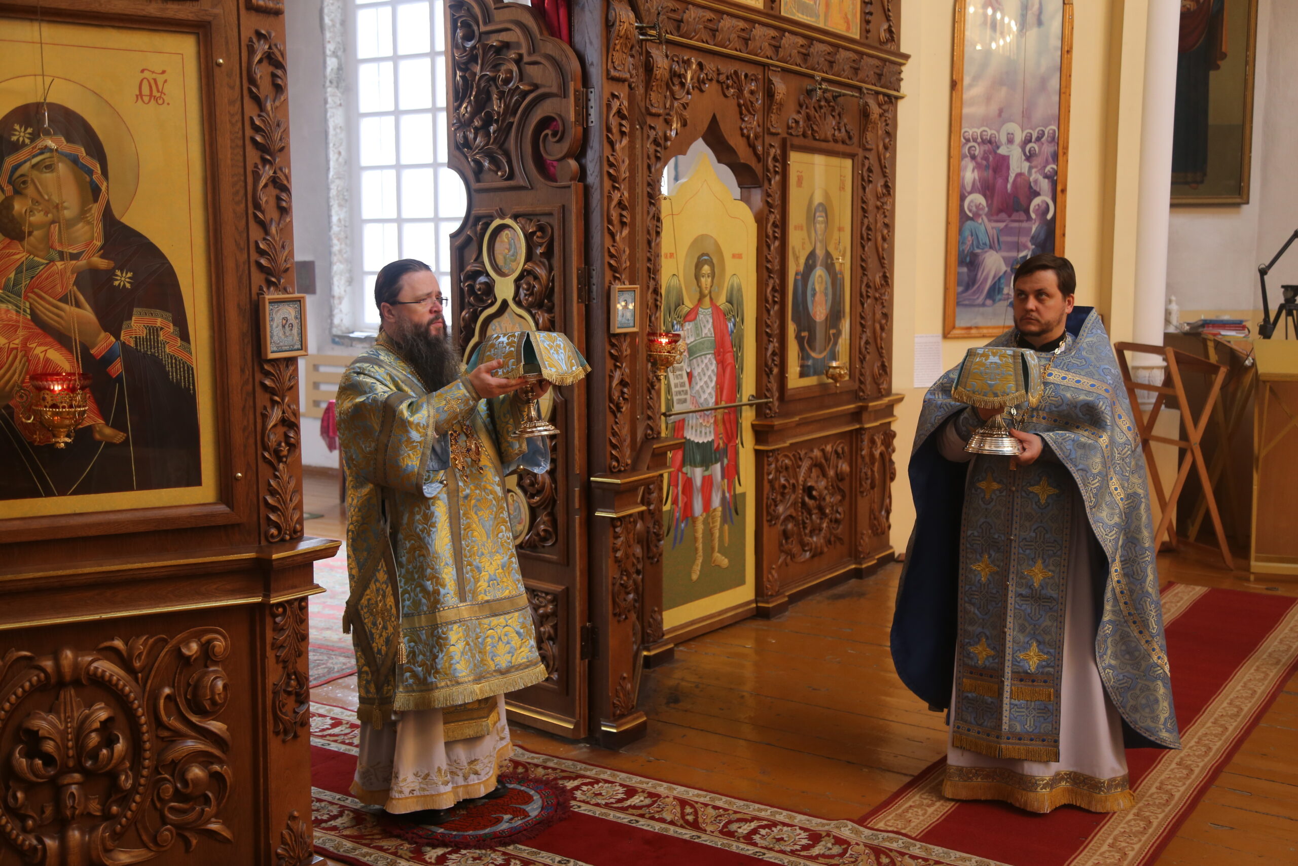 По окончании богослужения иерарх еще раз поздравил всех с престольным праздником, пожелав присутствующим по молитвам Пресвятой Богородицы обрести путь к Богу и надежду на вечную жизнь, а причастников — с принятием Святых Христовых Таин, так же поблагодарил отца Валерия за труды.