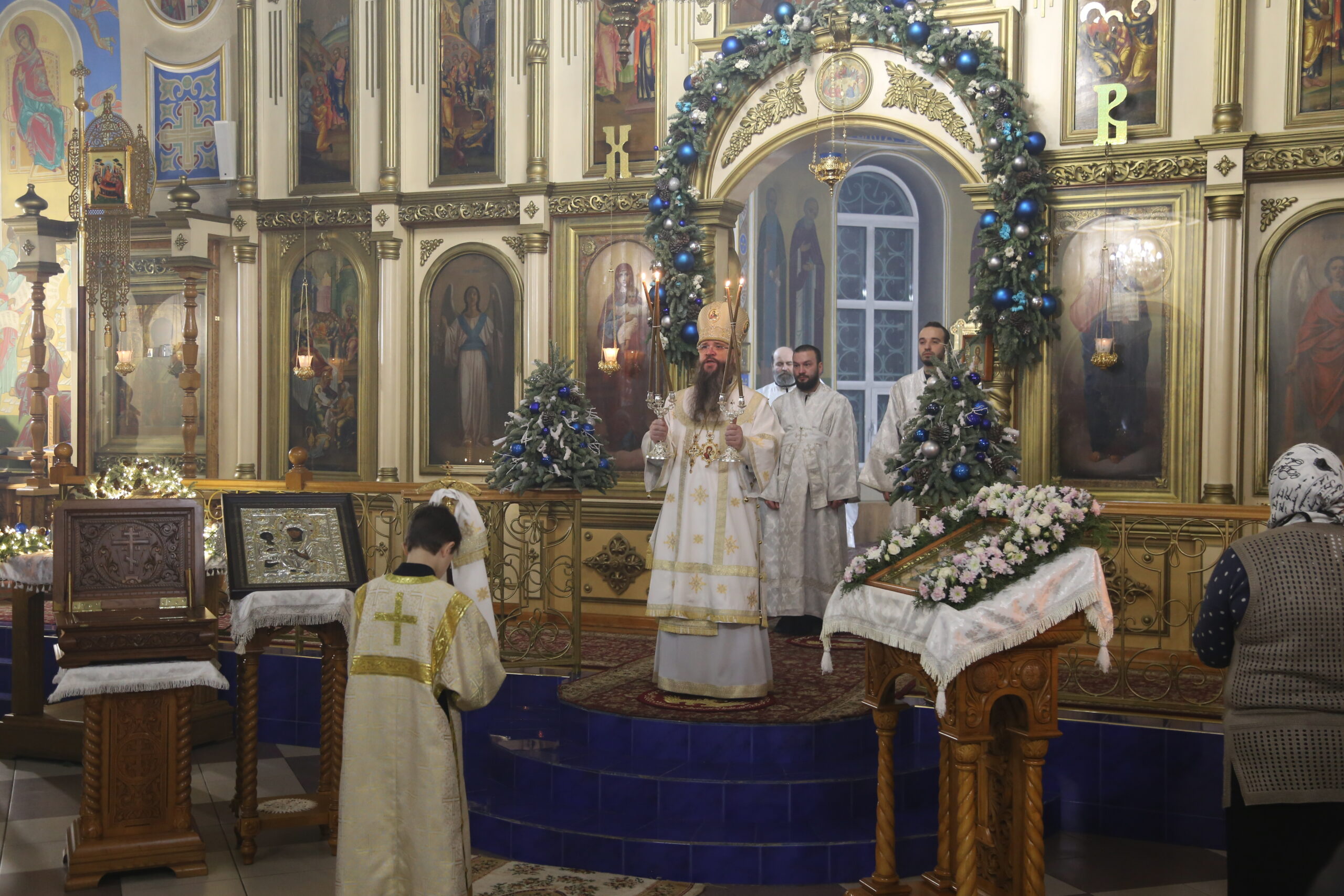 Его Высокопреосвященству сослужили клирики кафедрального храма.
