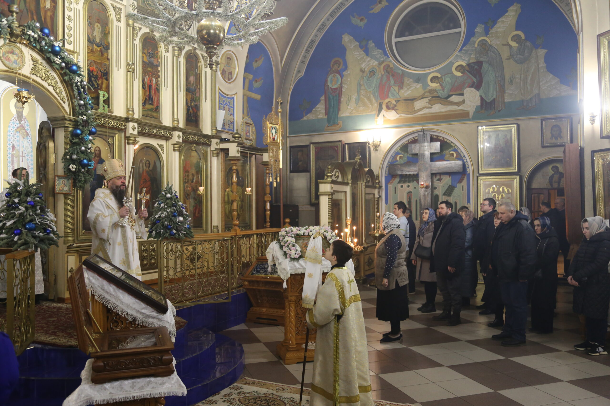 По прочтении Евангелия иерарх поздравил присутствующих с праздником Крещения Господня, после чего обратился с архипастырским словом к духовенству и мирянам.