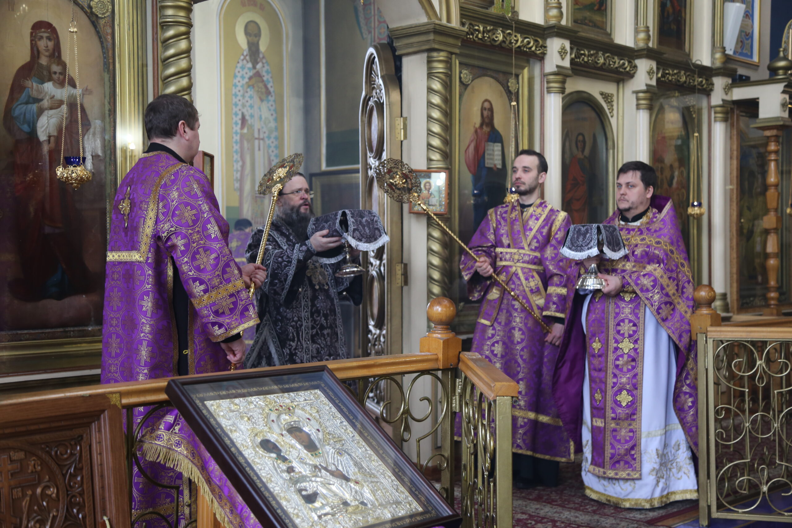 По сугубой ектении архиепископ Варлаам прочитал молитву о Святой Руси, возносимую во всех храмах Русской Православной Церкви по благословению Святейшего Патриарха Московского и всея Руси Кирилла.